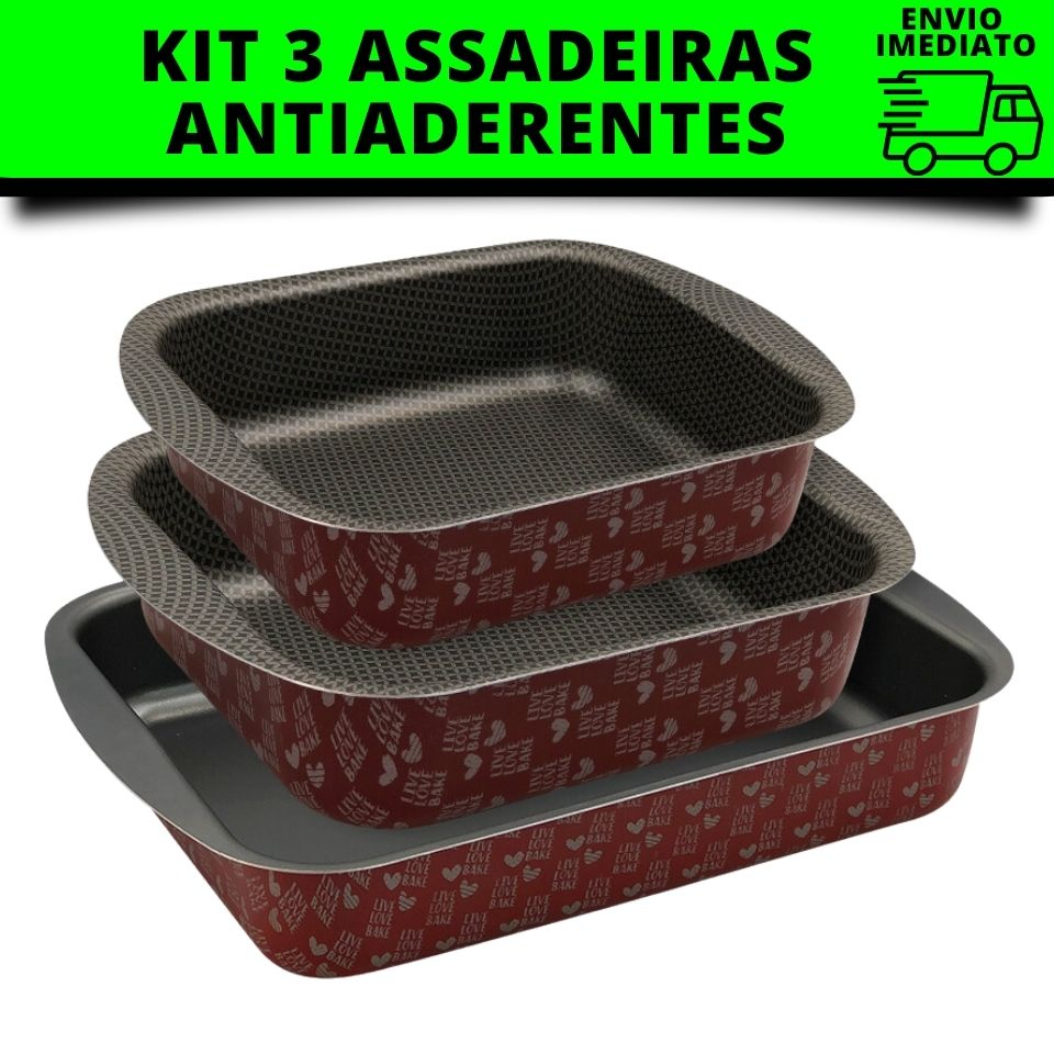 Assadeiras Antiaderentes Kit 3 peças - Vermelha Presente Dia Das Mães