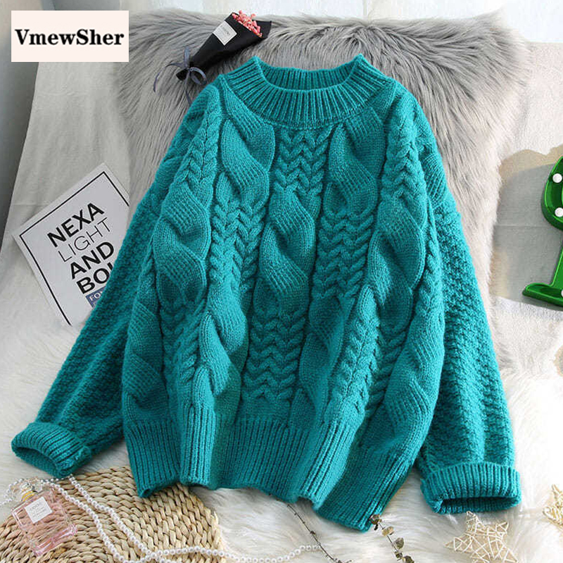 Vmewsher Suéter De Tricô Feminino Com Gola Redonda Grosso De Cor Lisa Para Outono / Inverno