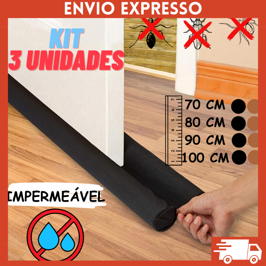 Kit 3 Veda Porta Rolinho Impermeável Protetor Ajustável Vedação Porta Duplo Não Entra Bicho Vento Pó