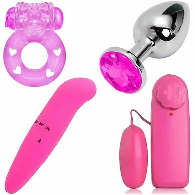 KIT Plug Anal P + Vibrador Bullet + Vibrador Ponto G Aveludado + Anel Peniano CORES ALEATÓRIAS Sex shop