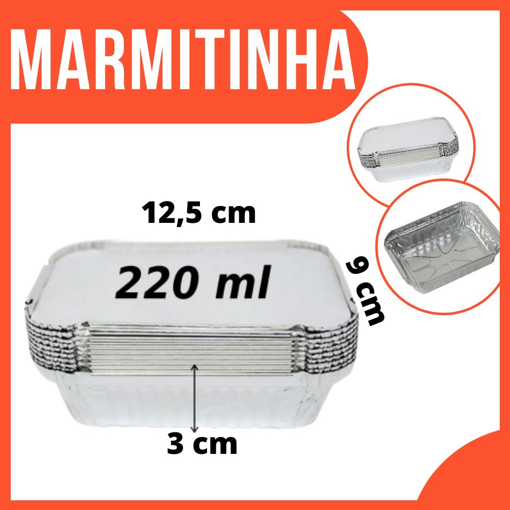 kit 25 50 marmitinha de alumínio 225ml com tampa marmita e forma de empada marmitex
