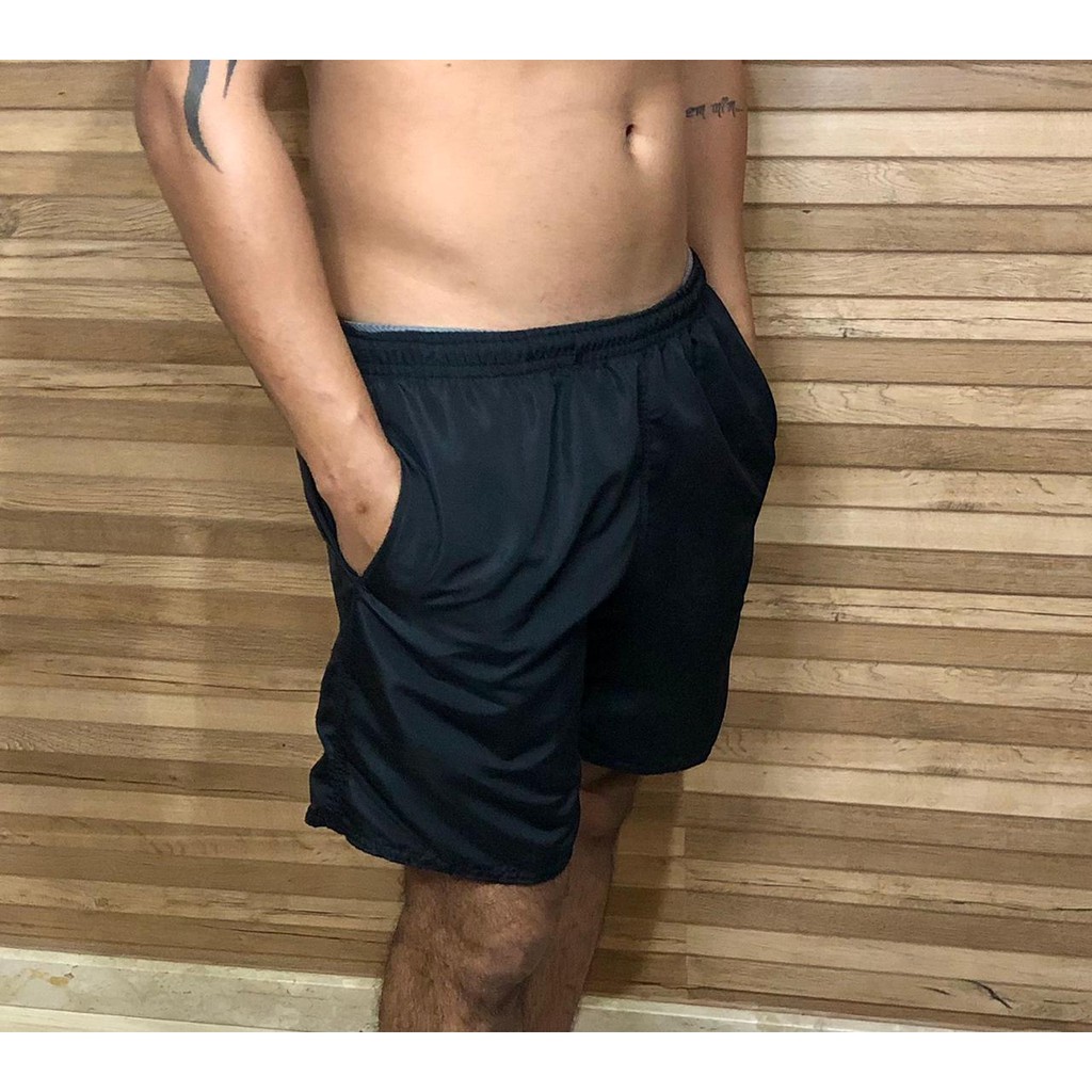 Short Liso Bermuda Mauricinho Tactel Basico Moda Praia Preto Verão Lisa Pequenos Defeitos