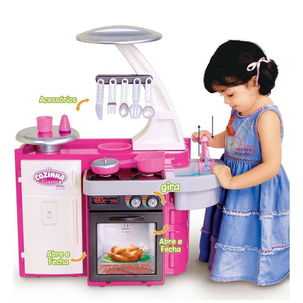 Cozinha Classic Menina Infantil Rosa Fogão Geladeira Pia Talheres Brinquedos Cotiplas
