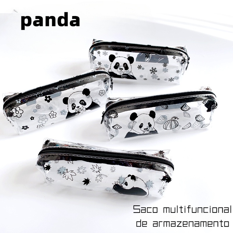 Criativo Padrão de desenho animado em PVC da moda Saco de lápis Panda de grande capacidade Saco de lápis à prova d'água Estojo de lápis transparente de alto valor