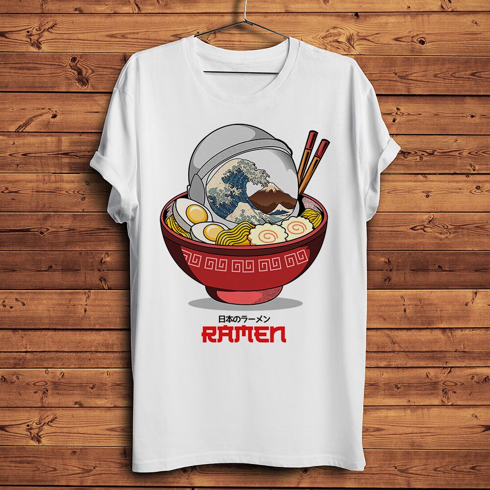 Japão Ukiyoe Astronauta Space Ramen Camiseta anime Engraçada Homens Verão Novo White Casual Manga Curta T Shirt Unisex streetwear tee