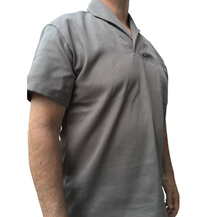 Camisa em Brim Cinza 100% Algodão Manga Curta Uniforme Para Trabalho