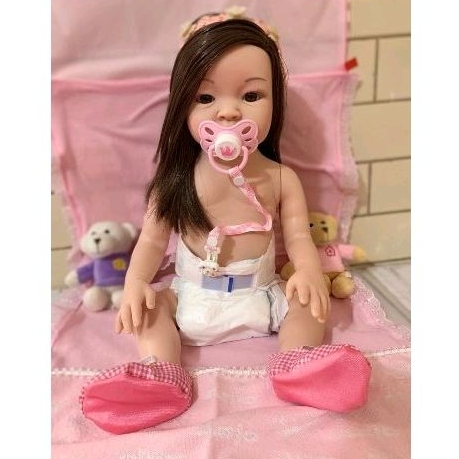 bebê reborn silicone para banho promoção cabelo longo castanhos