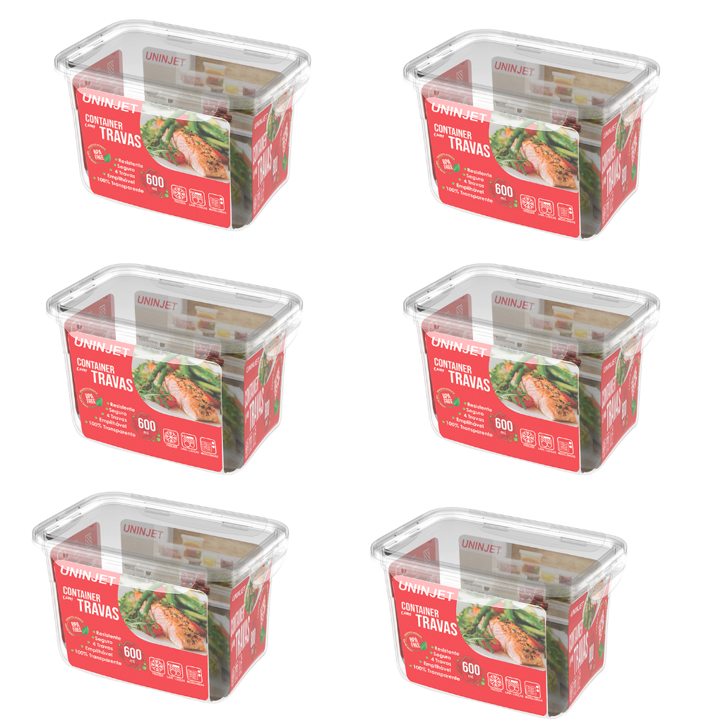 Kit 6 Potes para Marmitas Fitness 600ml Freezer e Micro-ondas com Tampas e Travas