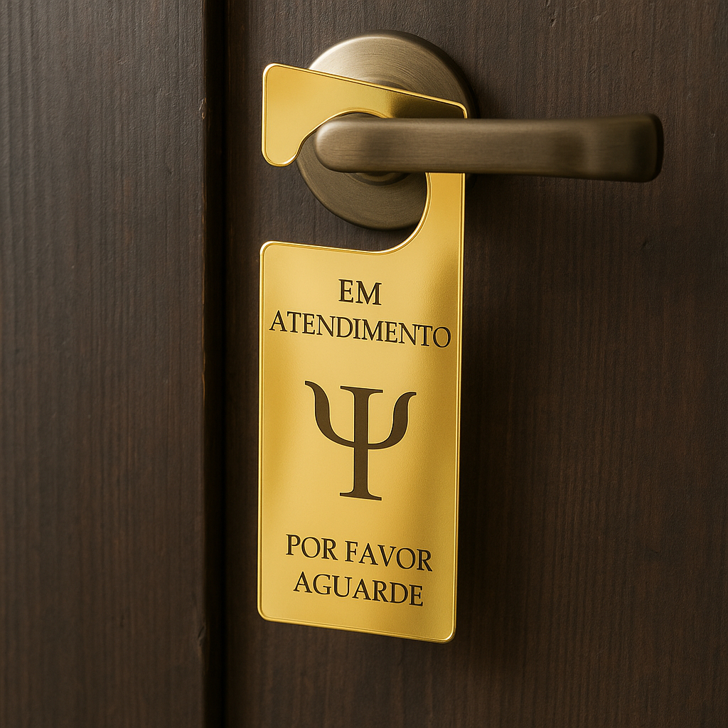Kit 2 Placa Profissional de Porta Em Atendimento Por Favor Aguarde Em Acrílico Espelhado