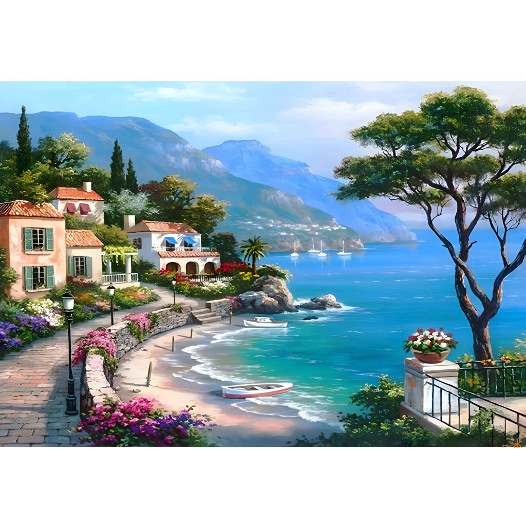 Conjunto De Pintura Com Diamante 5D Ferramentas Para Paisagem De Bricolage Cidade Do Mar