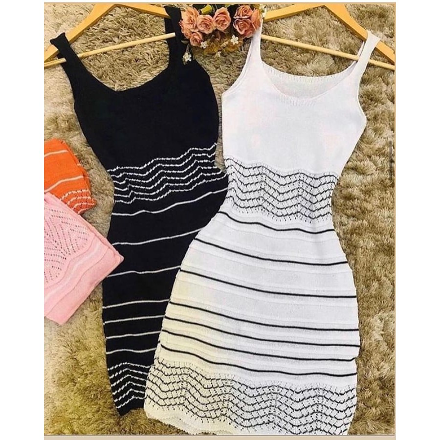Kit 2 vestidos curto de tricô. Vestido saida de praia curto de alcinha. Tamanho único M (36 até 40).