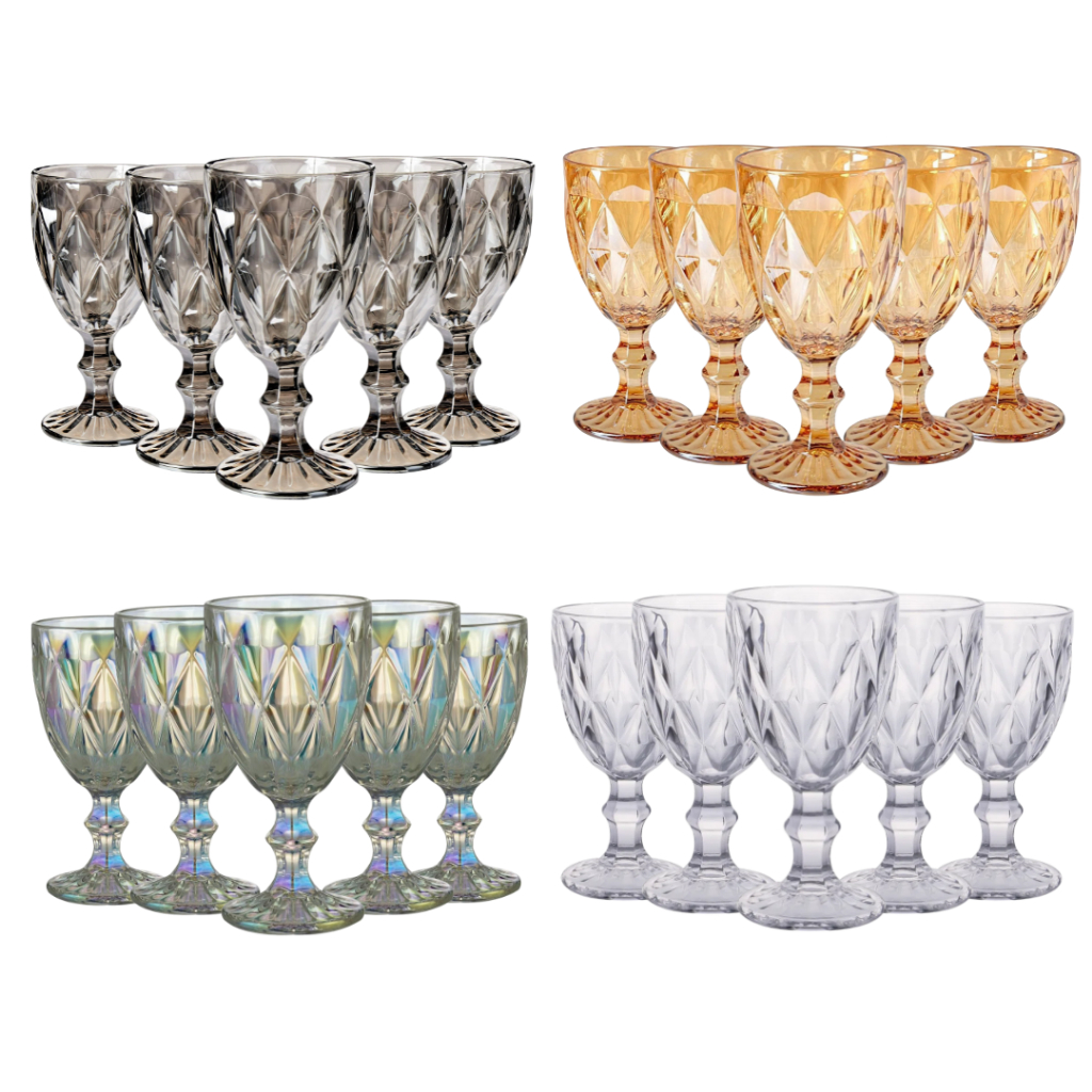 Jogo Com 6 Taças Modelo Diamante Diamond Transparente em Vidro 340ml Cristal Ecológico Fácil de Limpar Pratico Ótima Qualidade Excelente Taça para Vinho e agua