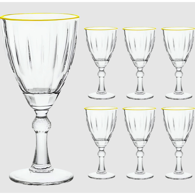 Jogo com 6 Taças em Vidro Dominic Com Borda Dourada 275 ml – Transparente