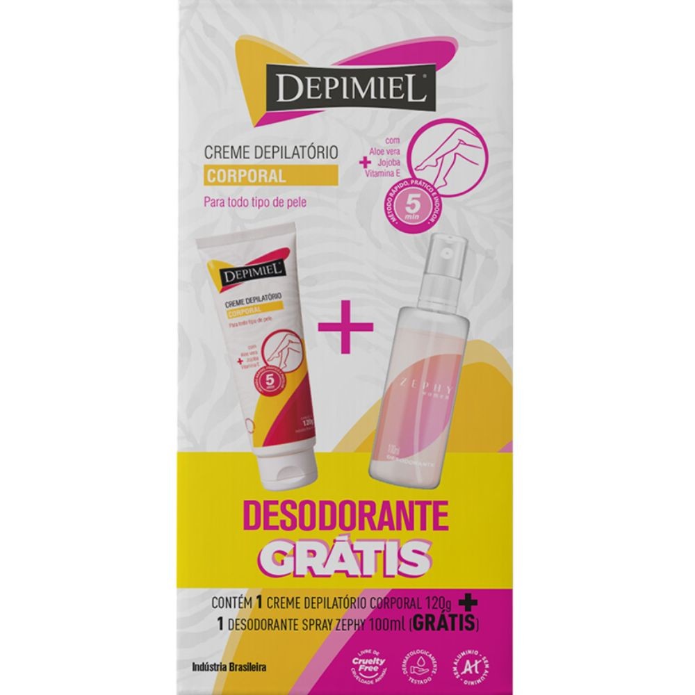 Creme Depilatório Depimiel 120g e 1 Desodorante Spray Zephy 100ml