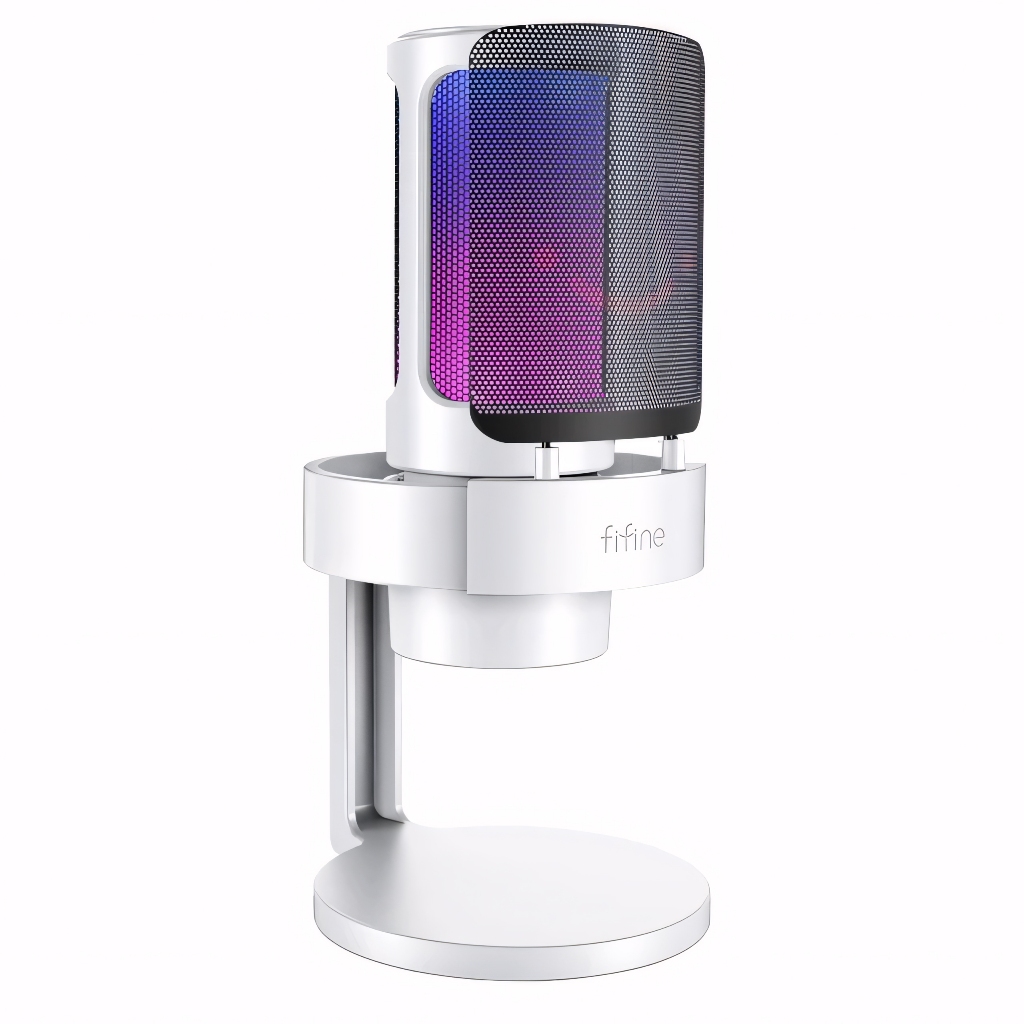 Microfone Condensador Fifine Ampligame Cardioide Gamer Com Led Rgb A8 Rosa