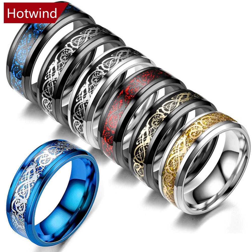 HOTWIND 8mm Aço Inoxidável Anel De Titânio Dragão Celta 7 Cores Inlay Vermelho Azul Preto Fibra De Carbono Jóias De Casamento Para Homens Mulheres Tamanho 6-13 K5Z9