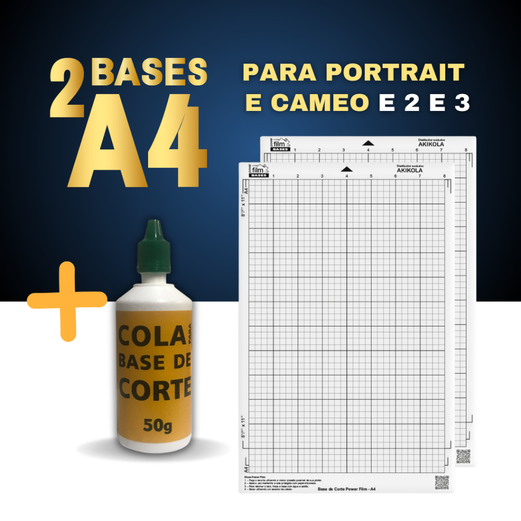 Kit com 1 Base A4 + 1 Base 30x30 + 1 Tubo de Cola + Para Silhouette Portrait, Portrait 2, 3 e 4 - Cameo, Cameo 2 e 3