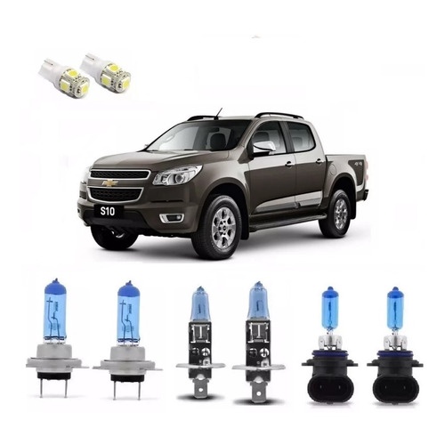 Kit Lampada Super Branca S10 Nova 2012 2013 2014 2015 2016 2017 2018 2019 2020 2021 2022 Farol Alto Baixo e Lanterna Foco Duplo