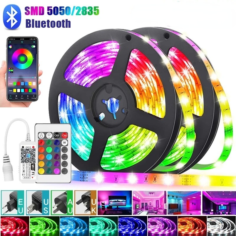 Fita Diodo Luminoso RGB 5050 Led 2835 DIY Flexível À Prova D'água Bluetooth Wifi Controller Power