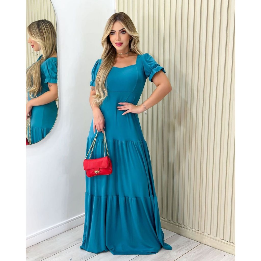 Vestido Longo Feminino Festa Casamento Formatura Batizado Duna Premium Manga Babado