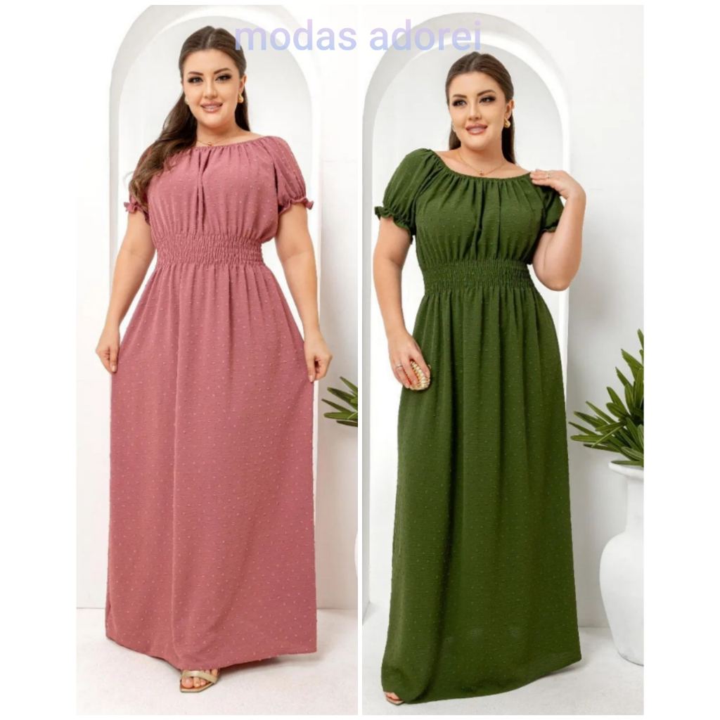 VESTIDO LONGO KITS 2 UNIDADES PROMOÇÃO feminino duna pipoca manga curta elastex