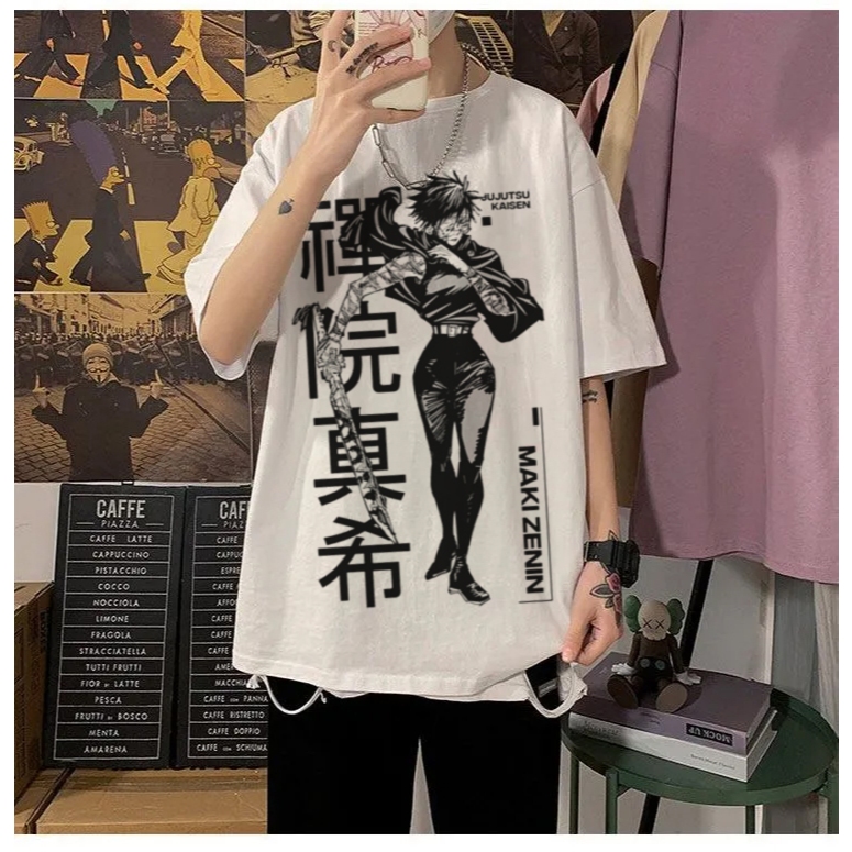 Camiseta Branca de Anime Maki Zenin Jujutsu Kaisen