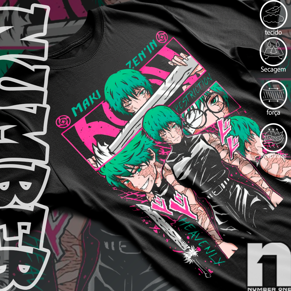 Camiseta Basica e OVERSIZED Maki Zenin Restriction Heavenly Jujutsu Kaisen Anime Unissex
