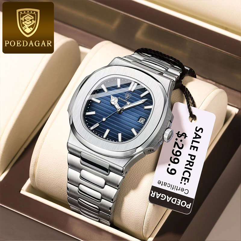POEDAGAR 2023 Venda A Quente Relógio De Pulso Popular De Luxo Homens Calendário À Prova D'água Luminoso De Aço Inoxidável Esporte Casual Quartzo Suíço