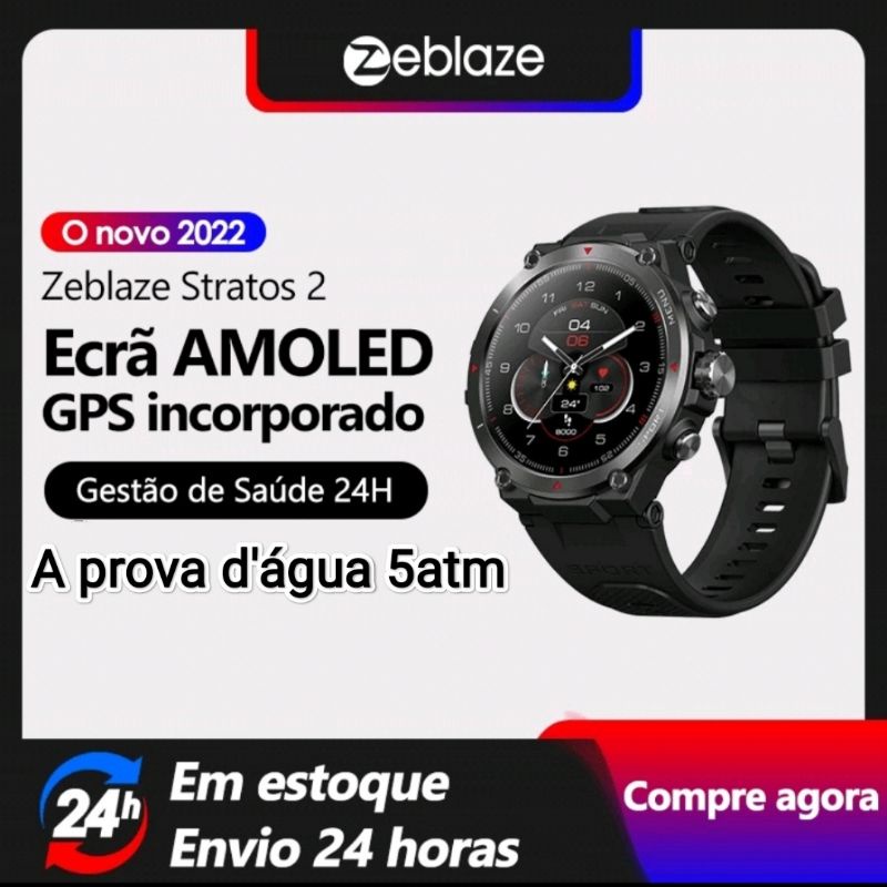 Relógio Smartwatch ZEBLAZE stratos 2 GPS, tela AMOLED