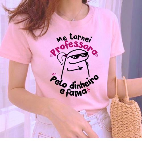 Camiseta Feminina T-shirt Blusinha Professora Pedagogia Me Tornei Professora Pelo Dinheiro e Fama