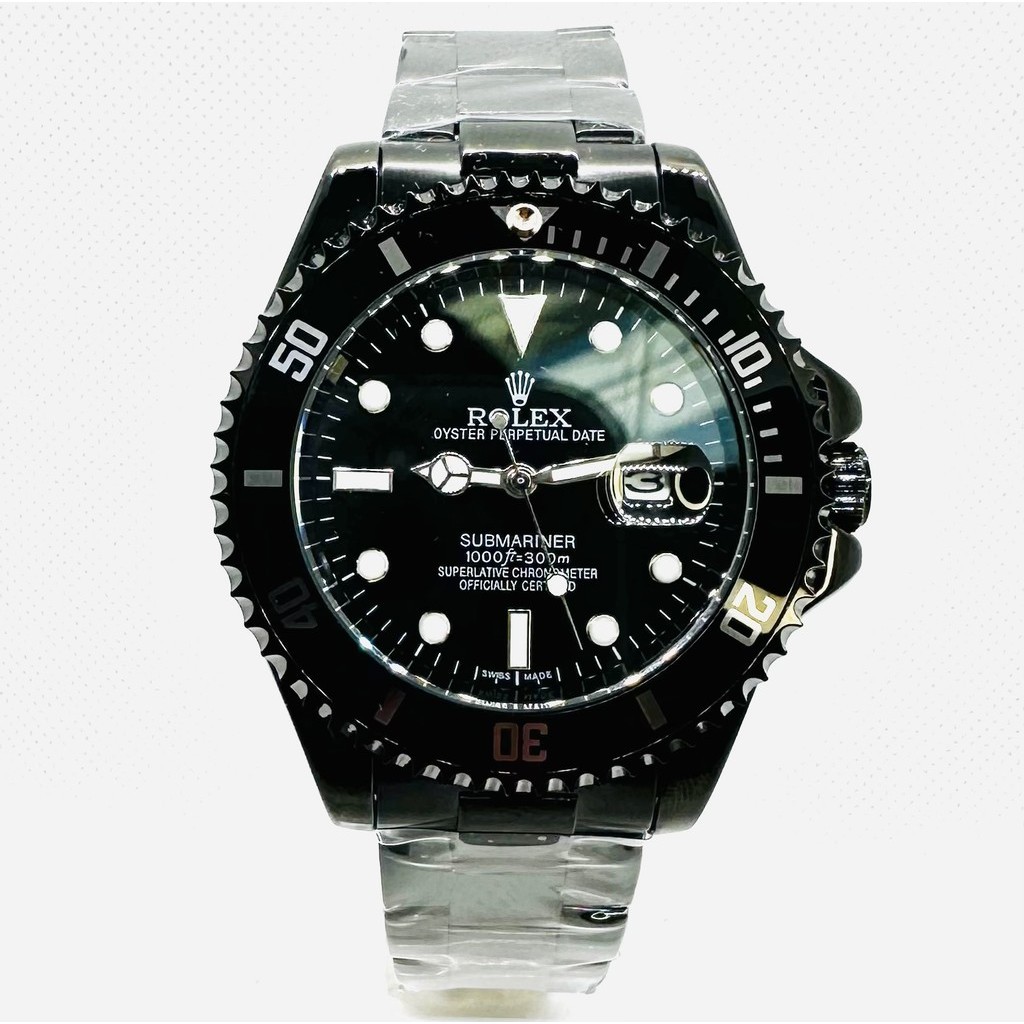 Relógio 1-linha Submariner Black -Pulseira de aço inoxidável Oyster -Branco, Preto- A prova d’água 20m