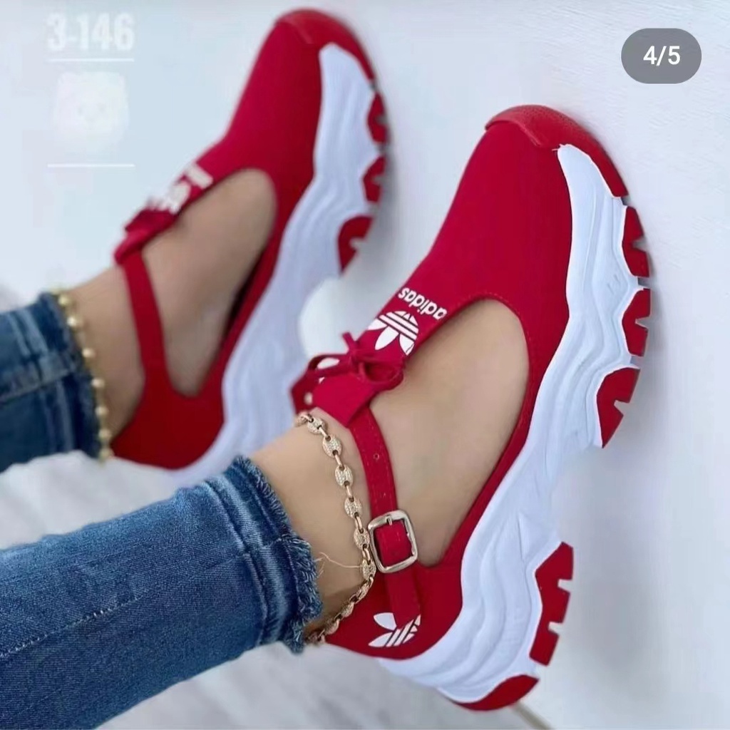 Tênis feminino 2023 outono nova cor de fundo grosso contraste camurça fivela gravata euro-americana casual