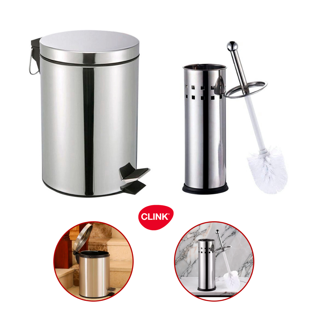 Kit Lixeira Cesto de Lixo 10 Litros / Escova Sanitária Inox Automática Tampa Click Label Para Banheiro Cozinha Escritório Quarto - Arqplast