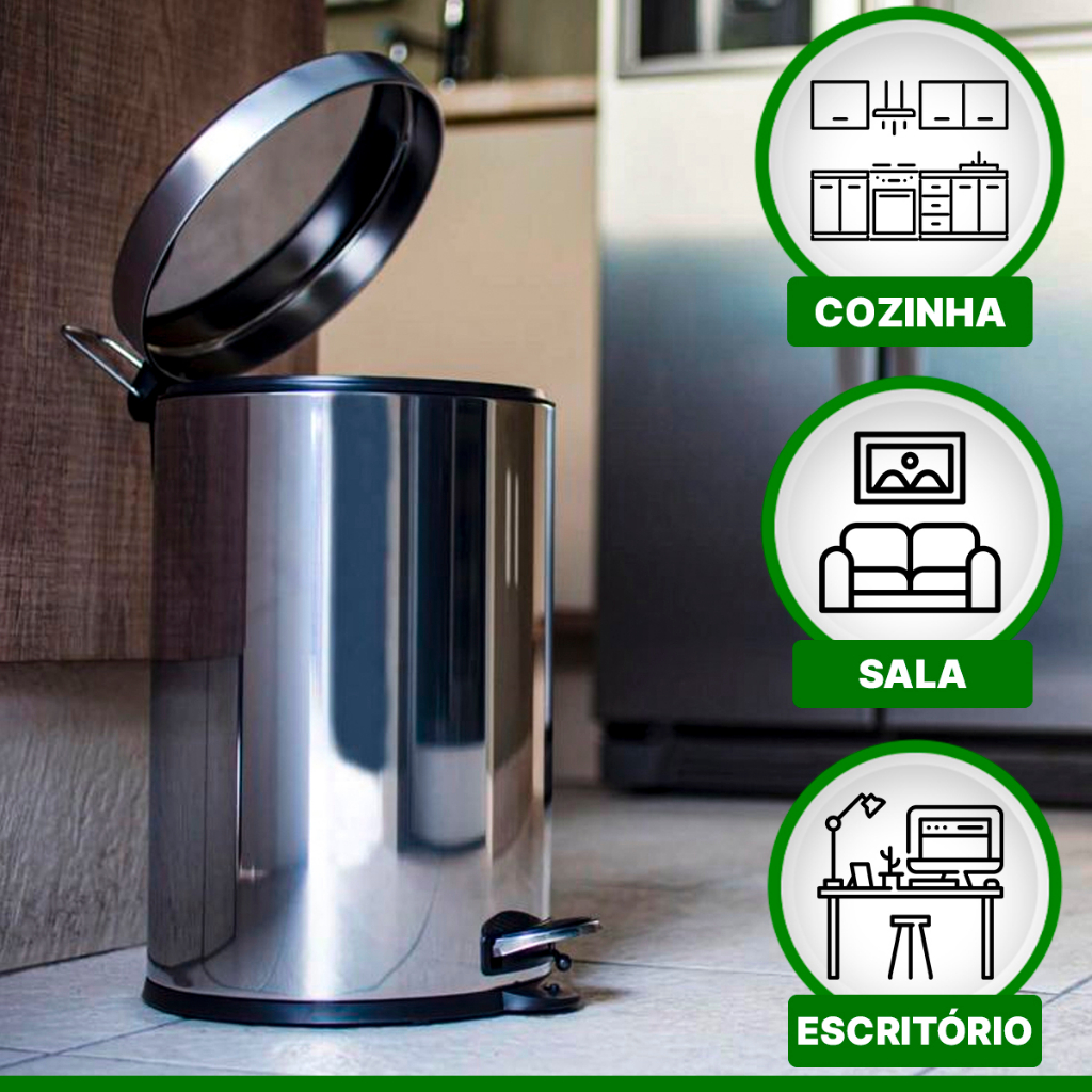 Kit 2 Lixeira Lixo Inox Aço Cesto Resistente Reforçado Leve Balde Removível Pedal Emborrachado 5 Litros