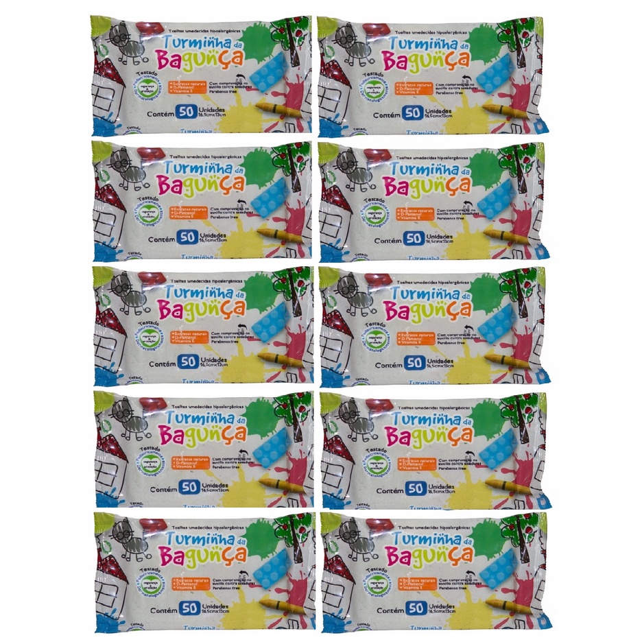 Kit com 10 - Lenços Umedecidos Turminha da Bagunça Toalhas Umedecidas 50 Unidades Cada
