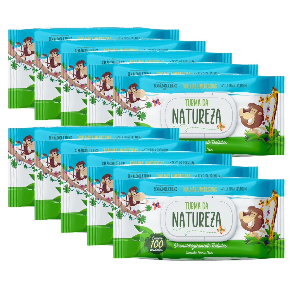 Kit C/10 Toalhas Umedecidas Turma Da Natureza C/100 Uni