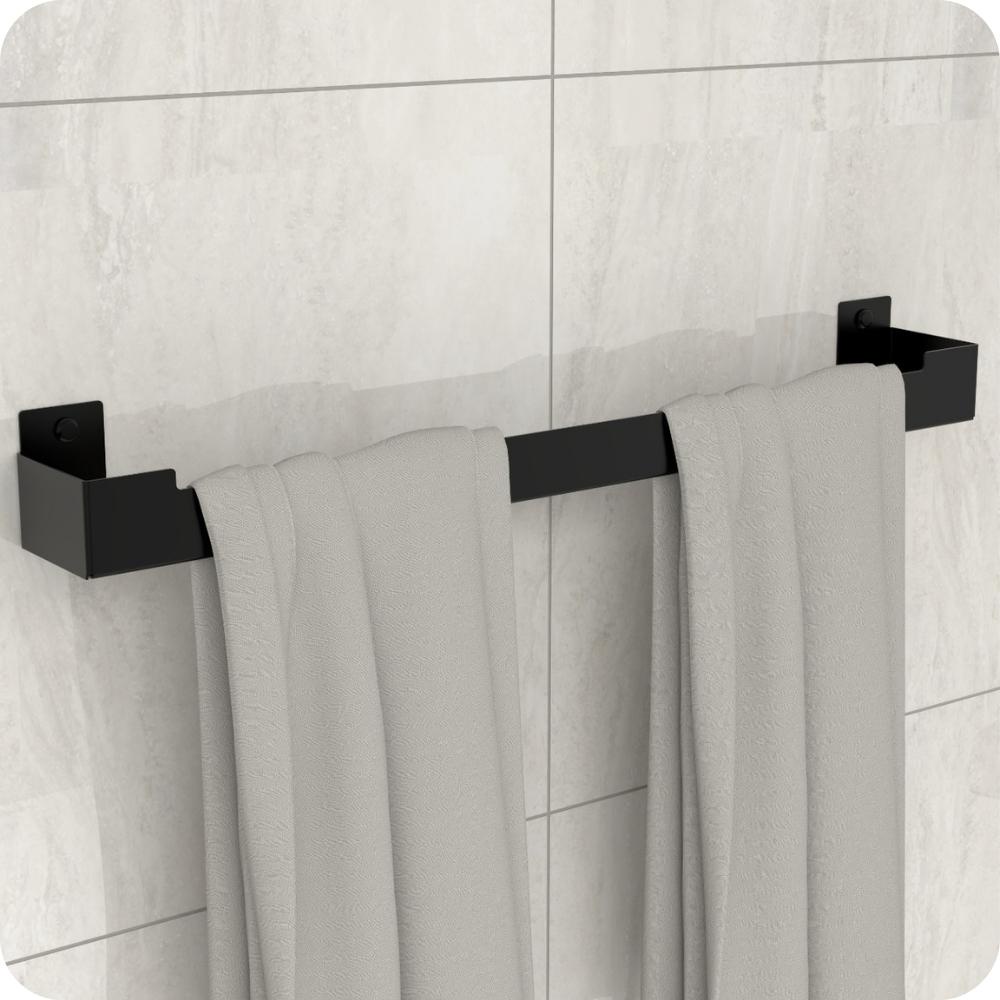 Porta Toalha De Banho Banheiro Preto 3M Com Adesivo Super Resistente Black