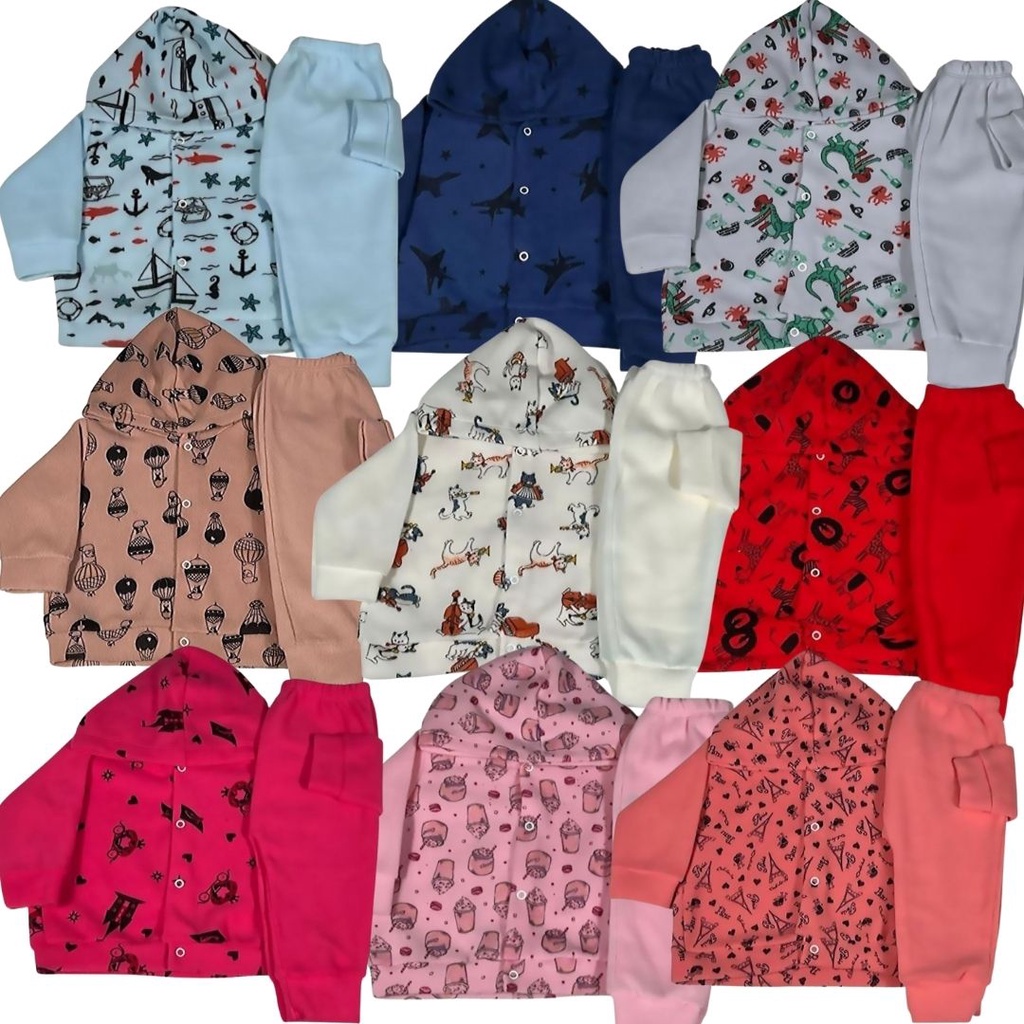 Kit 3 Conjunto Inverno Com Bolso e Capuz Soft/Mantinha Infantil Roupa De Frio Menino/Menina