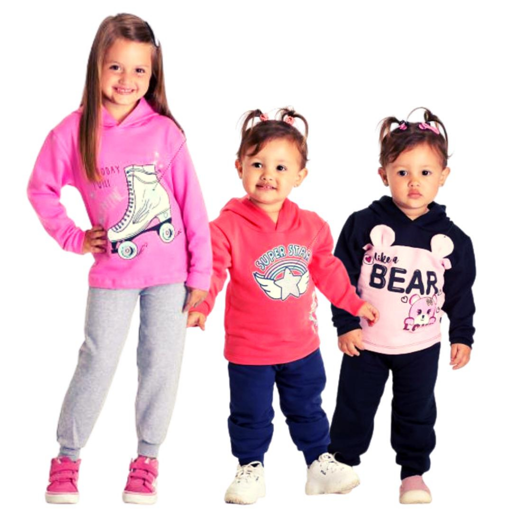 Kit 6 Peças Conjunto Moletom Infantil Menina 1 ao 16 Feminino Inverno com Capuz