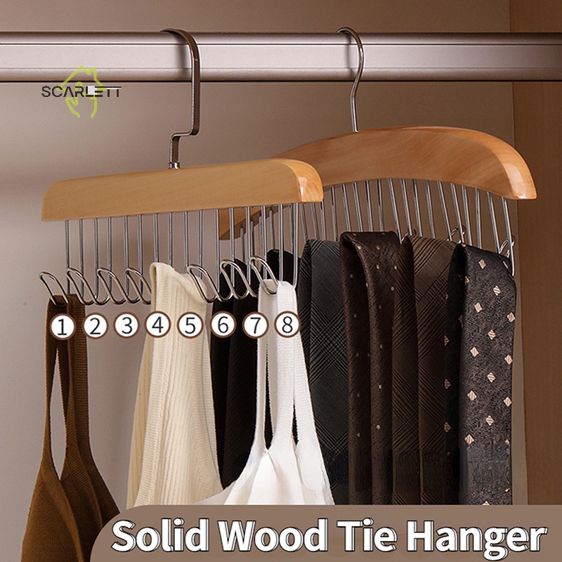 [Scarlett] Cintos De Madeira Camisole Clothes Hanger 8 Ganchos Organizador De Chapéus De Gravata Rack Roupas Sem Escorregamento Economia De Espaço Porta De Guarda-Roupa [Preferido]