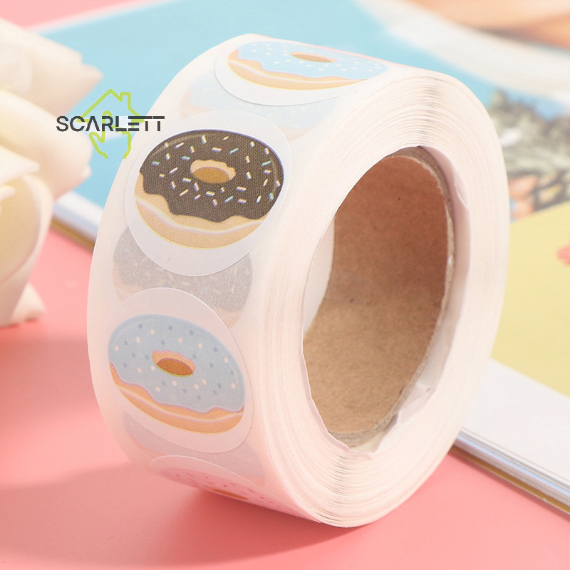 [Scarlett] 500pcs Adesivos Para Donuts 8 Desenhos Deliciosos Pão De Bolo [Preferido]