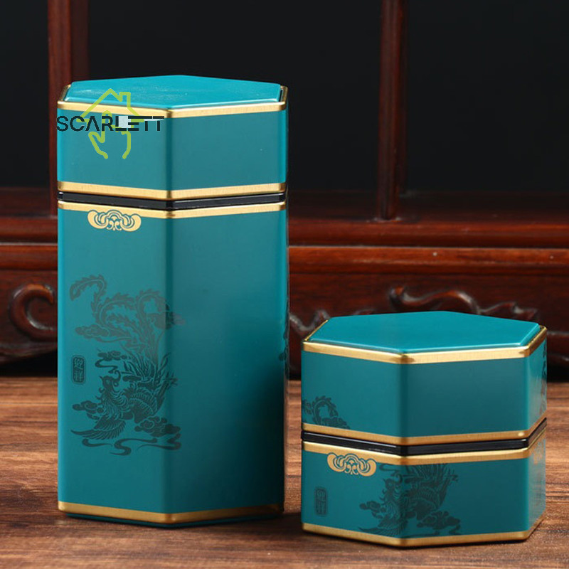 [Scarlett] Criativo Lata De Hexagonal Chinesa Armazenamento De Chá Em Selada Caixa Portátil Vazia Acessórios Do Conjunto [Preferido]