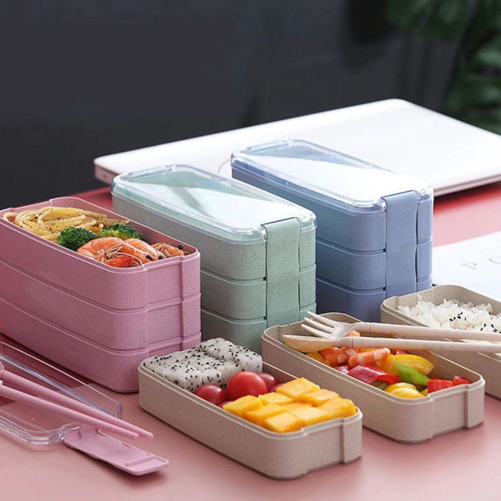 Marmita Fitness com Divisória 900Ml Ecologica Pote de 3 Andares com Garfo Colher lunch box