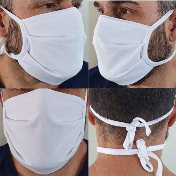 Máscara de Proteção Facial com Camada Dupla de Tecido e Tiras de Amarrar na Cabeça/Orelha