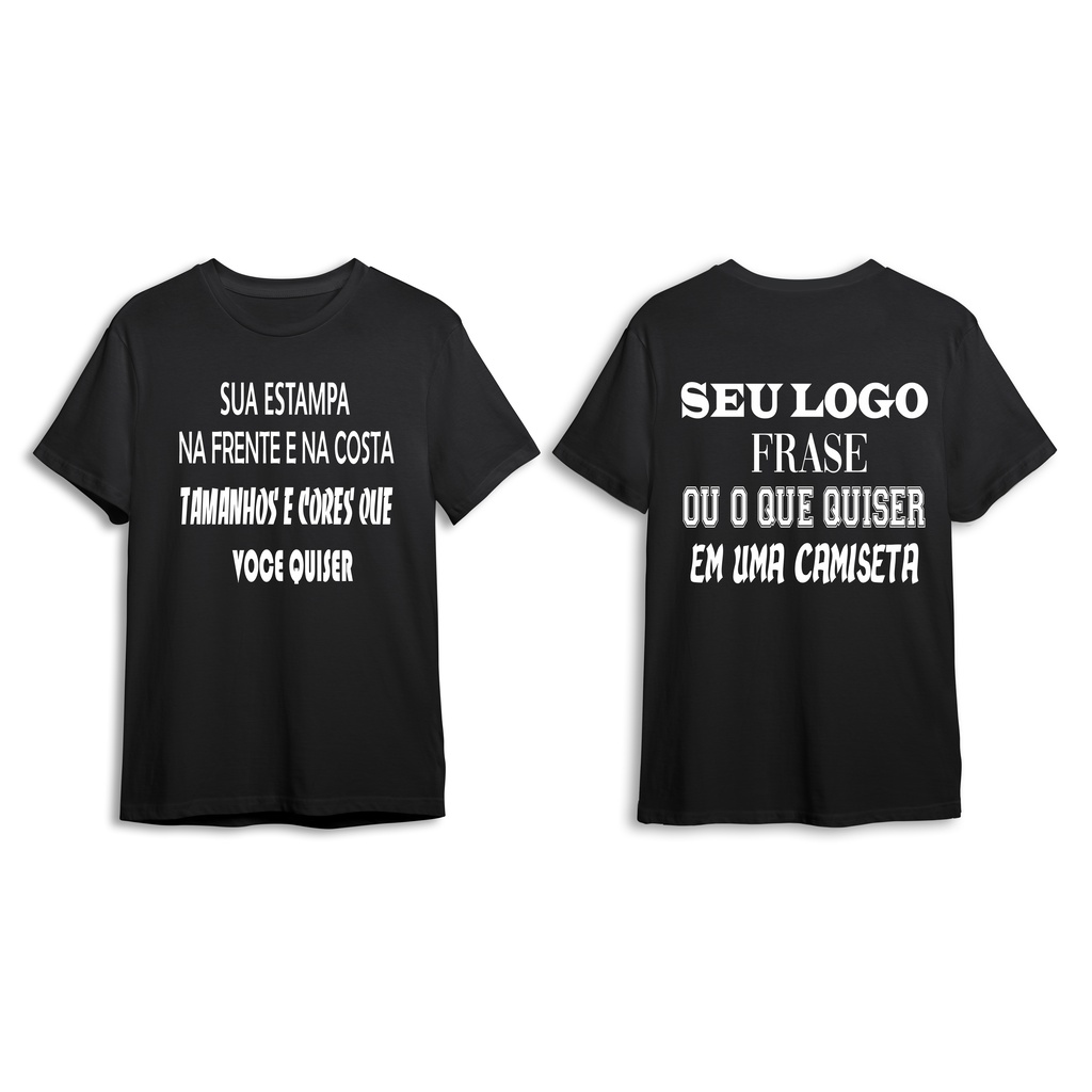 Camiseta Camisa Masculino e Feminino Manga Curta Preta Estampa Logo Uniforme Profissional Empresa Personalizado Estampado Plus Size