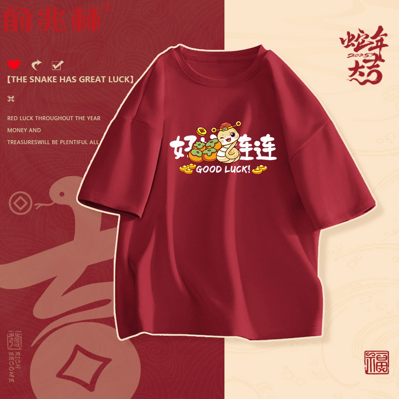 2025 Família CNY Camiseta Bênção Texto Impresso Masculina De Manga Curta Casual Camisa Oversized Plus Size Camisetas Grá