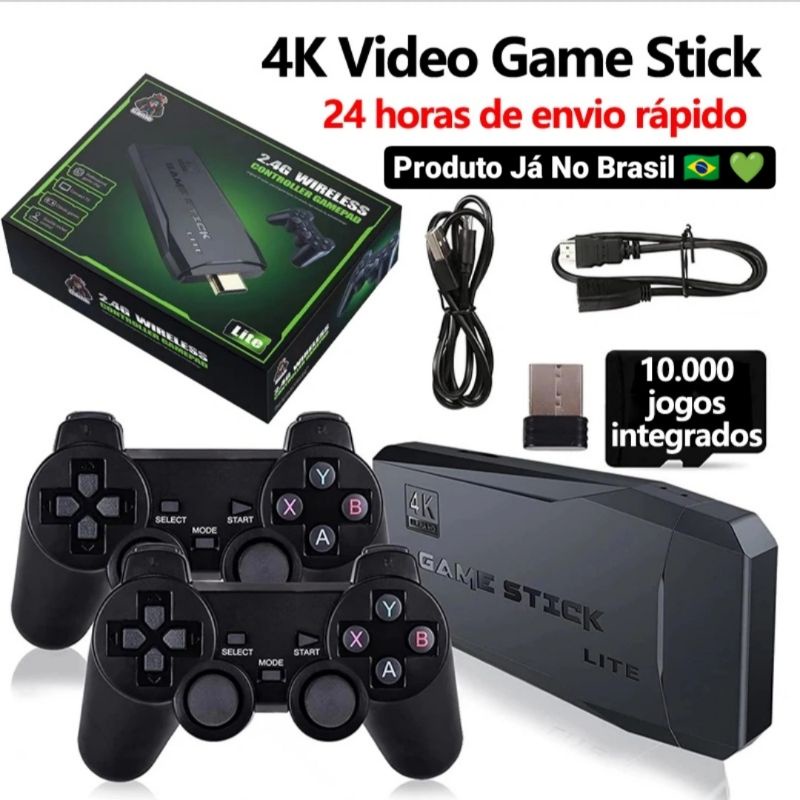 Video Game Stick 4k 10mil Jogos Retro 2 Controles Sem Fio Console Portatil Jogos Retro Antigo Original Envio Imediato
