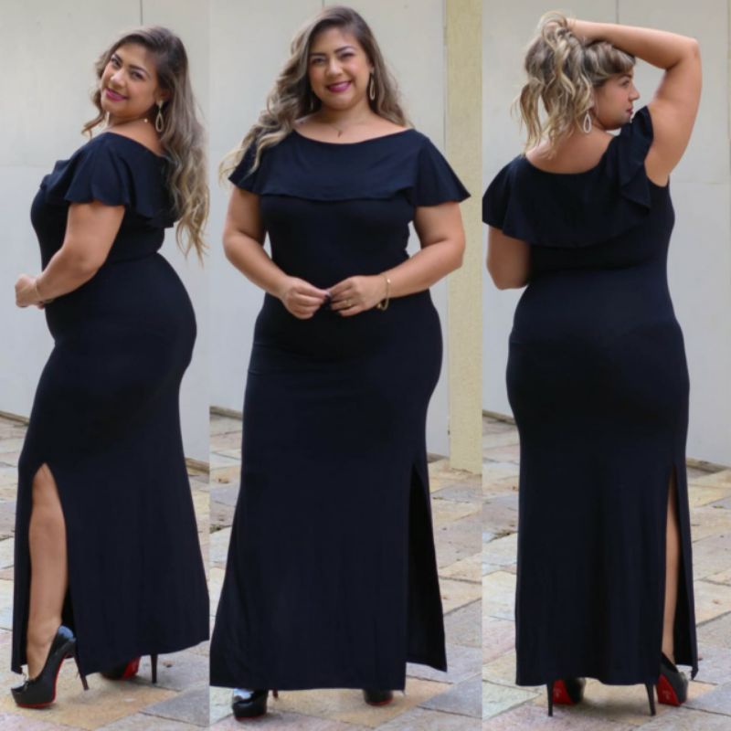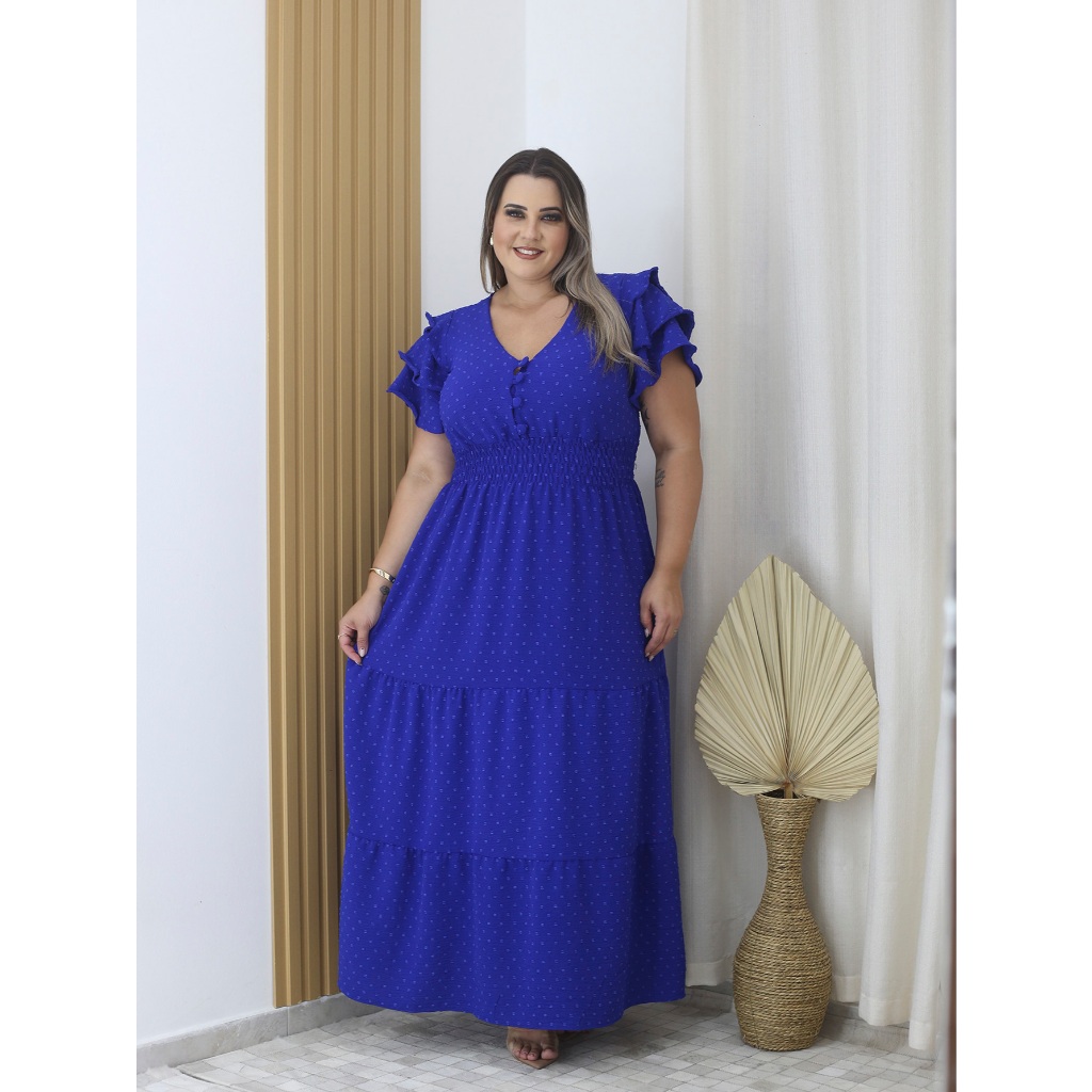 Vestido Feminino Longo Plus Size Moda Evangélica com fenda Manga Alça e liso do 46 ao 50