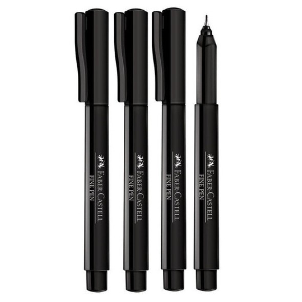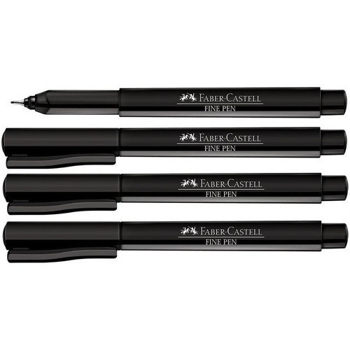 Kit C/4 Caneta Fine Pen Preta 0,4mm Ponta Fina Faber Castell