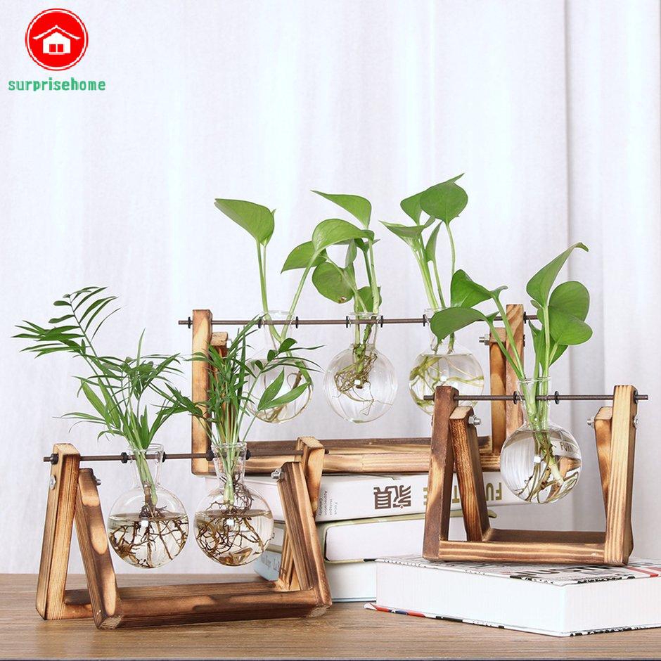 (só vaso transparente)Vaso Transparente para Planta Hidropônica do Terrário/Vaso De Planta Hidropônica Vintage De Madeira Transparente Para Decoração De Casa / Jardim / Casamento